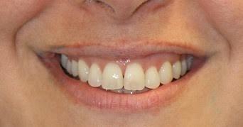 QST orthodontics with ceramic brackets, was used to correct these misaligned front teeth and prominent canines. The result is an improved, more harmonious smile.